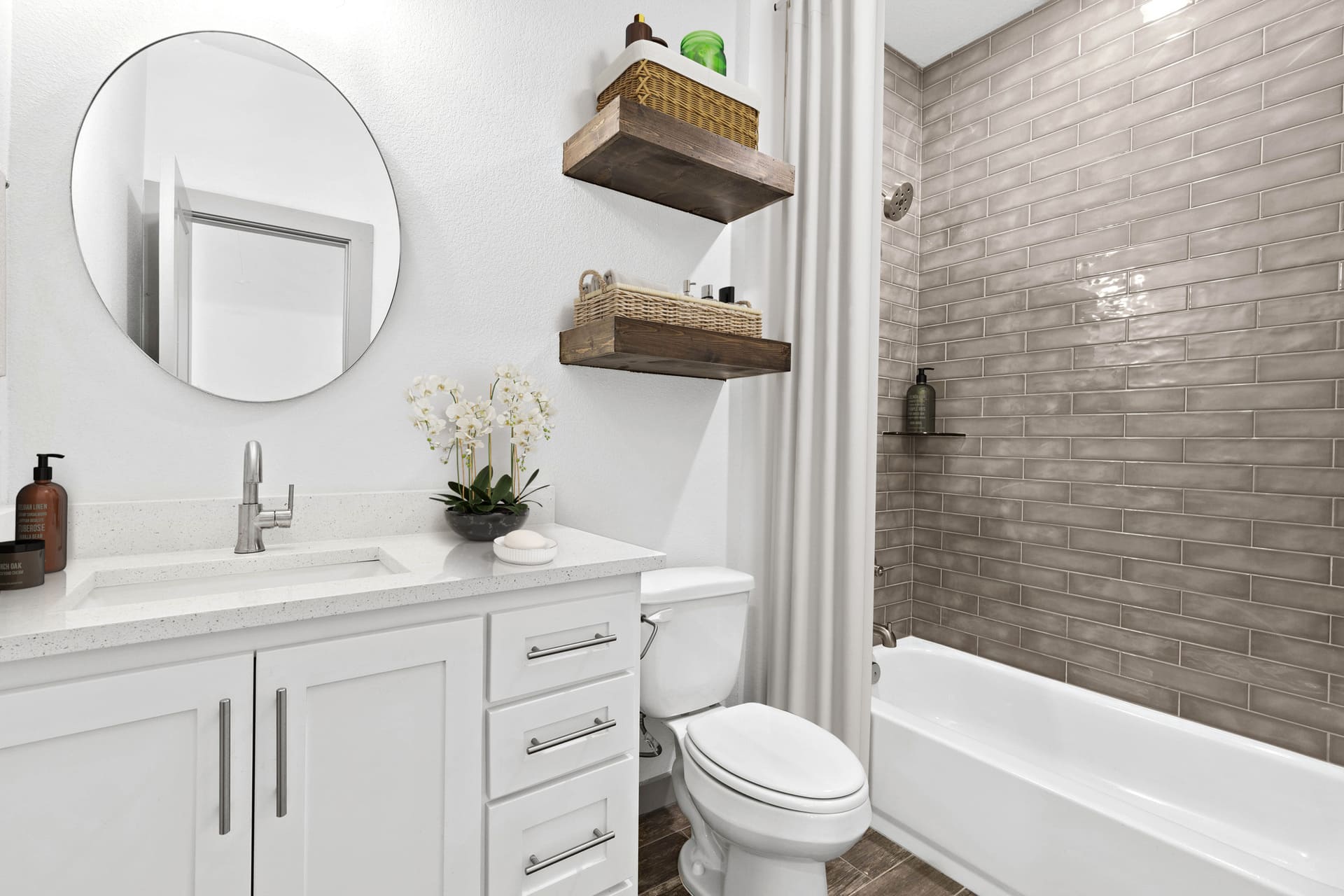 • Custom vanities, tile showers, and flooring installations